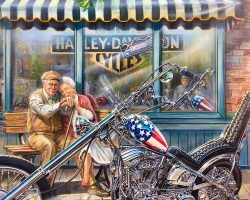 Motorcycle artwork by premier artist Marc Lacourciere (Motor Marc). Motorcycle paintings that include Sturgis Motorcycle Rally, Easyriders, Indian Motorcycle, Harley Davidson, American Chopper and more.